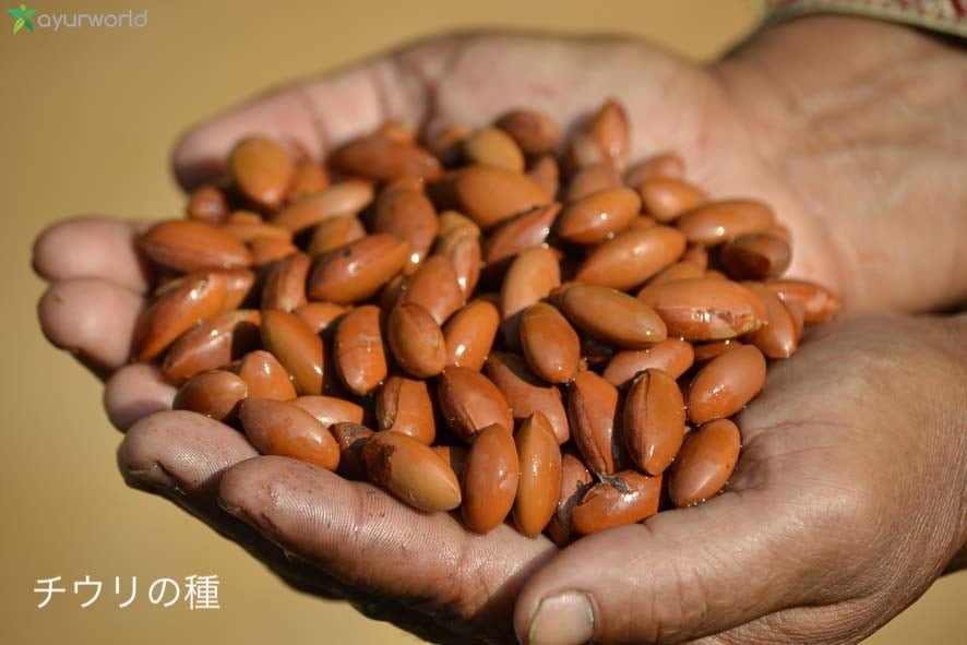 ●チウリバター:チウリはネパールの中間山地に自生する常緑樹です。チウリ種子からとれる油分はその高い保湿力からチウリバターまたはネパールバターとも呼ばれています。ネパールの山岳民チェパン族の人たちは、食用油や傷の塗り薬として古来よりこの植物性のバターを利用してきました。あらゆる肌質の方に有効です。